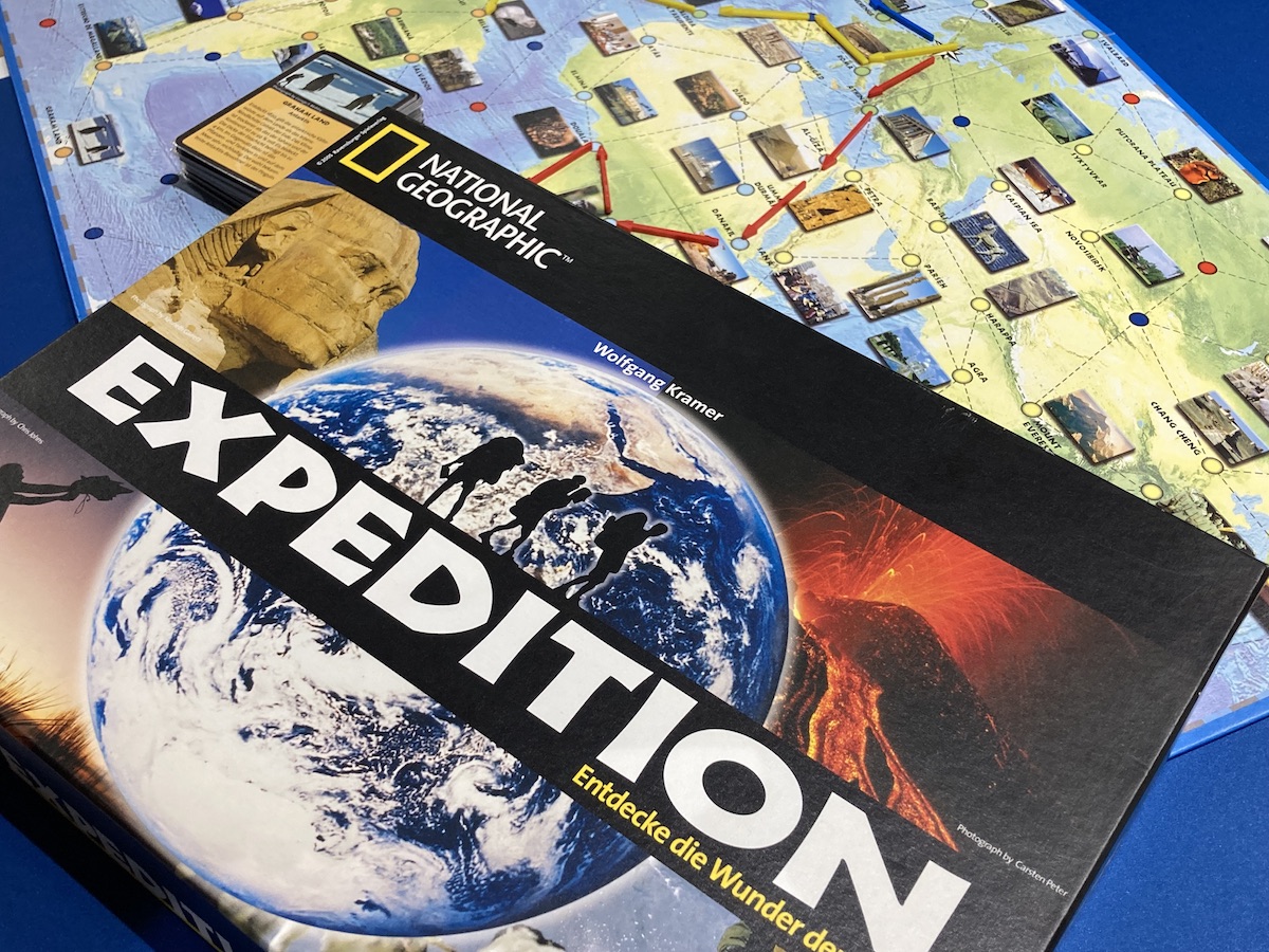 「エクスペディション」は世界地図の中にある5つの目的地に到着することを目指すボードゲーム。探検家は全員が共有して動かすので相手の進みたい目的地までルートを進めてしまったする悩ましさが楽しい作品です。